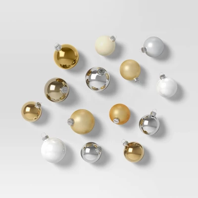 Add classic holiday flair to this year’s tree with this 42-Count Round Glass Christmas Tree Ornament Set from Wondershop™. Made of glass, this ornament set features 42 transparent ball ornaments in various sizes. Plus, each ornament has a silver-tone cap with a coordinating top loop for easy hanging from your tree’s branches.