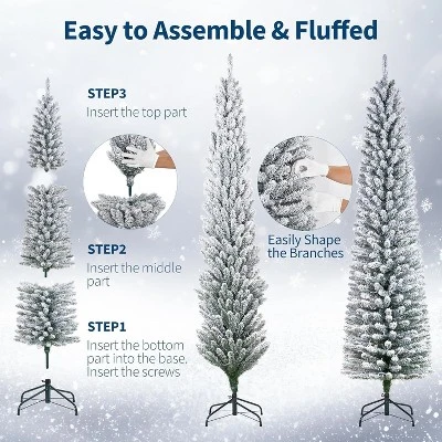 - Product Name: Acekool Snow Flocked Pencil Tree, PVC Mixed Flocked Needles, Hinged Slim Fir, Sturdy Base, Space Saving Corner Style