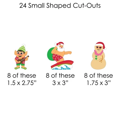Clothespin Garland Banner – 44 Pieces INCLUDE: 24 small shaped cut-outs, 20 large shaped cut-outs, 50 mini clothespins, and 10 yards white 2mm satin cord. Some simple assembly required. DIY PARTY SUPPLIES: Tropical Christmas small paper shaped cut-out SIZE: 8 – Ukulele Elf Shape (1.5 inches x 2.75 inches), 8 – Surfing Santa Shape (3 inches x 3 inches), and 8 – Sandman Snowman Shape (1.75 inches x 3 inches). Tropical Christmas large paper shaped cut-outs SIZE: 5 – Snowman Shape (4 inches x 7 inches), 5 – Santa With Surfboard Shape (5.5 inches x 7 inches), 5 – Palm Tree Shape (5.5 inches x 7 inches), and 5 – Santa With Pink Flamingo Pool Float Shape (5.5 inches x 7 inches). EASY PARTY DECOR: Style any Tropical Christmas or Holiday Party with Tropical Christmas clothespin garland banner. Before hanging, plan out your desired pattern by alternating in sizes. Using a miniature clothespin, clip shapes on the included cord. Hang finished DIY garland banner at the entrance of your party, over mantelpiece, along buffet tables, or along a stair rail. After the party, reuse the clothespins and cord to hang event photos as a fun keepsake. PREMIUM PARTY DECORATION: Tropical Christmas large cut-outs are professionally printed double-sided. Small cut-outs are professionally printed with coordinating pattern on back, and all on sturdy cardstock paper with a photo-like shine. They are then individually cut, inspected and carefully packaged. Beach Santa clothespin garland banner is a 44-piece DIY kit that can be used in many ways. Get inspired with this fun do-it-yourself Tropical Christmas or Holiday Party decor kit! MADE IN THE USA: Tropical Christmas clothespin garland banner decoration kit is designed and manufactured at our Wisconsin facility using materials that are Made in the USA.
