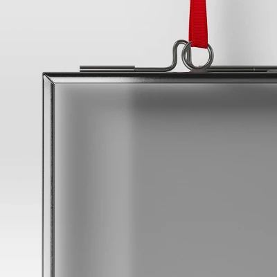 Showcase your treasured memories this holiday season using this Christmas Silver Metal Photo Frame Ornament from Wondershop™. This Christmas ornament features a rectangular, silver-tone metal frame with a glass face to clearly display a photo. Suitable for indoor use only, this ornament also has an attached red loop that makes it easy to hang from the branches of your tree.