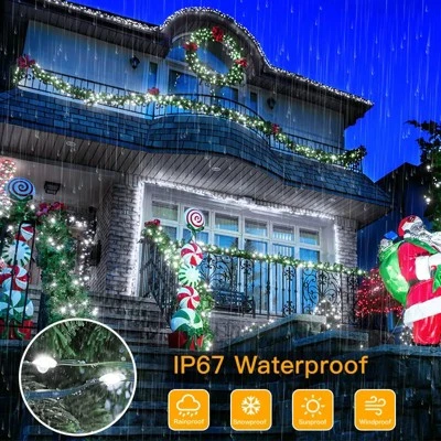 - 🎅[Super Long & High Quality] With 330ft/100m(first led to last led) and 9.8ft/3m extension wire, Ollny led outdoor Christmas lights are long enough for all kinds of house decorations needs. Applied high quality chips and PVC material, our led christmas lights are very bright and more durable.