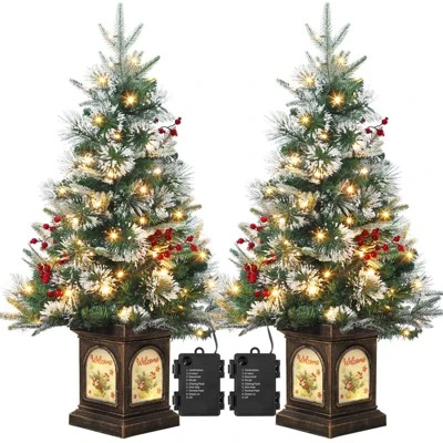 Elevate your holiday decor with the 3ft Snow Flocked Artificial Christmas Tree 2 Pack. Featuring lifelike snow-covered branches that mimic a fresh winter spruce, this tabletop tree brings cozy, realistic charm to any indoor space—no messy pine needles. Pre-lit with 78 warm white LED lights and a glowing elk base, it instantly creates a festive ambiance (batteries not included) without the hassle of extra string lights. With 8 adjustable lighting modes (steady on, twinkle, chasing, etc.), you can effortlessly switch between calming and lively vibes to match your mood or decor. At 3ft tall, its compact design is perfect for tabletops, desks, or small areas, saving space while spreading holiday cheer. Crafted from flame-retardant, allergen-free PVC, this durable tree ensures safety for homes with kids or pets and lasts for seasons. As a 2-pack, you can decorate multiple rooms or share the joy—ideal for creating a cohesive festive look throughout your space.