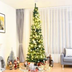Costway 9FT Pencil Christmas Tree Slim Xmas Tree For Indoor Outdoor Decoration Green